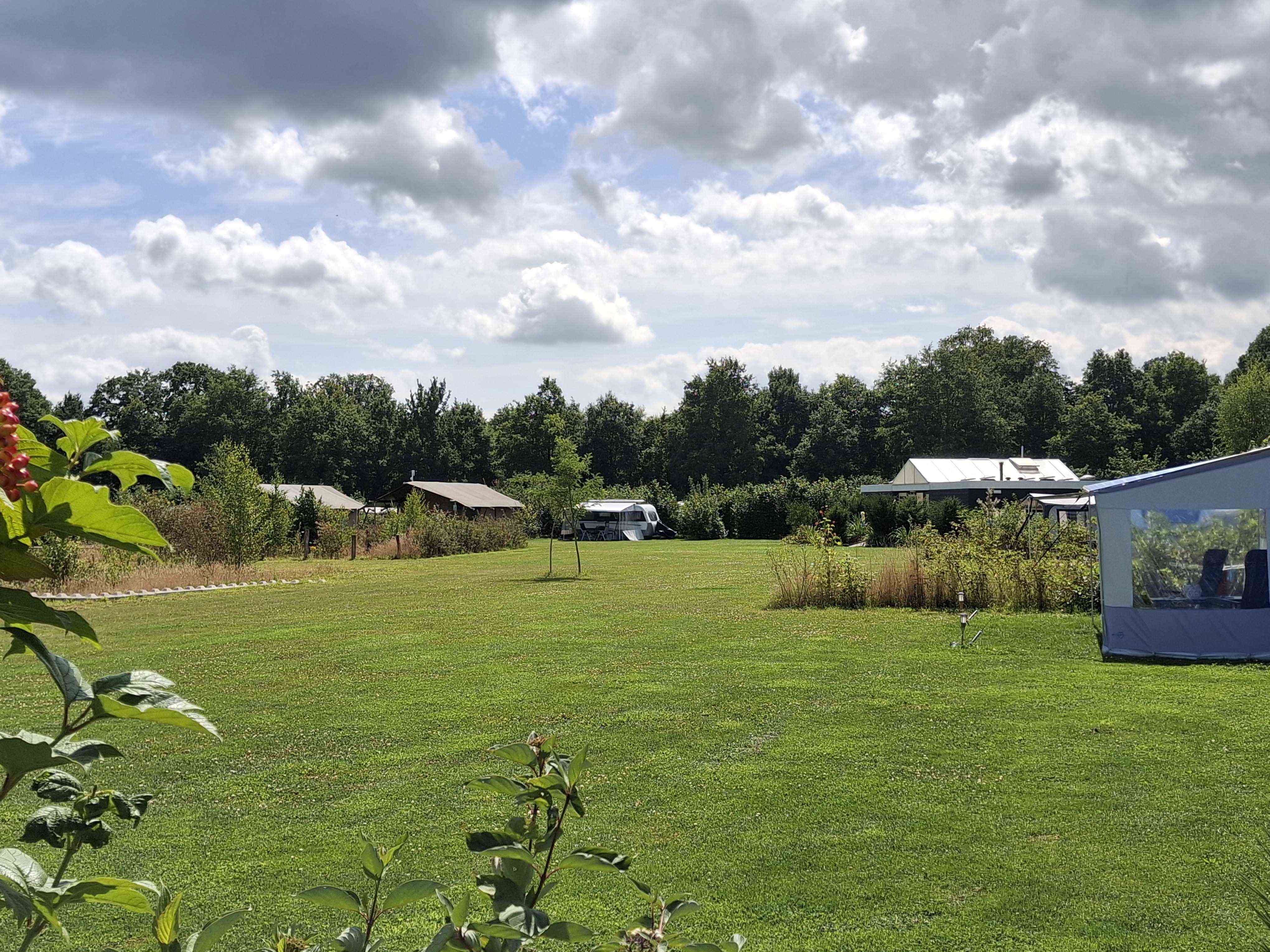 Wilt u met meerdere caravans een "eigen" plekje creëeren dan kan dat ook op dit veld. Op onze plaatsen 5 tot en met 8 bent u omringd door bossages wat deze plekken uitermate geschikt maakt voor een verblijf met familie of vrienden. Iets verderop zijn de plaatsen met onze privésanitairuinits die u tegen een meerprijs bij ons kan huren.